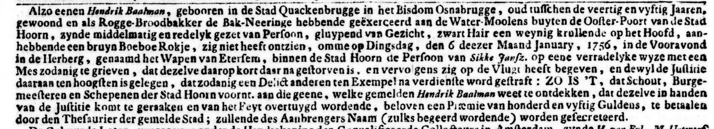 - Factual Data: The core of the story rests on demonstrable facts, such as Hendrik Baalman’s name, his birth and death dates, the location Hoorn, the year of the crime (1756), the nature of the crime, his 20-month period of flight, and his eventual conviction.